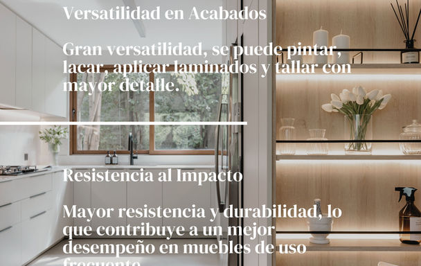 Contamos con una gran variedad de frentes, todos son 100% MDF un aglomerado con una densidad superior, mayor resistencia y acabado uniforme, por su fabricación con fibras de madera de alta calidad. Los Laminados en sus distintos acabados llevan cantos termo fundidos industrialmente a alta temperatura, entregando una terminación más imperceptible. Toda esta avanzada tecnología brasilera, permite muebles más duraderos y mayor estabilidad frente a cambios de temperatura o humedad. Es un producto premium que eleva cualquíer proyecto.